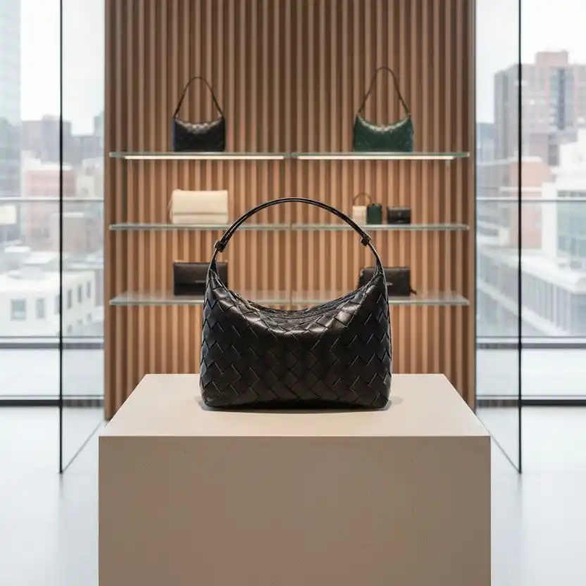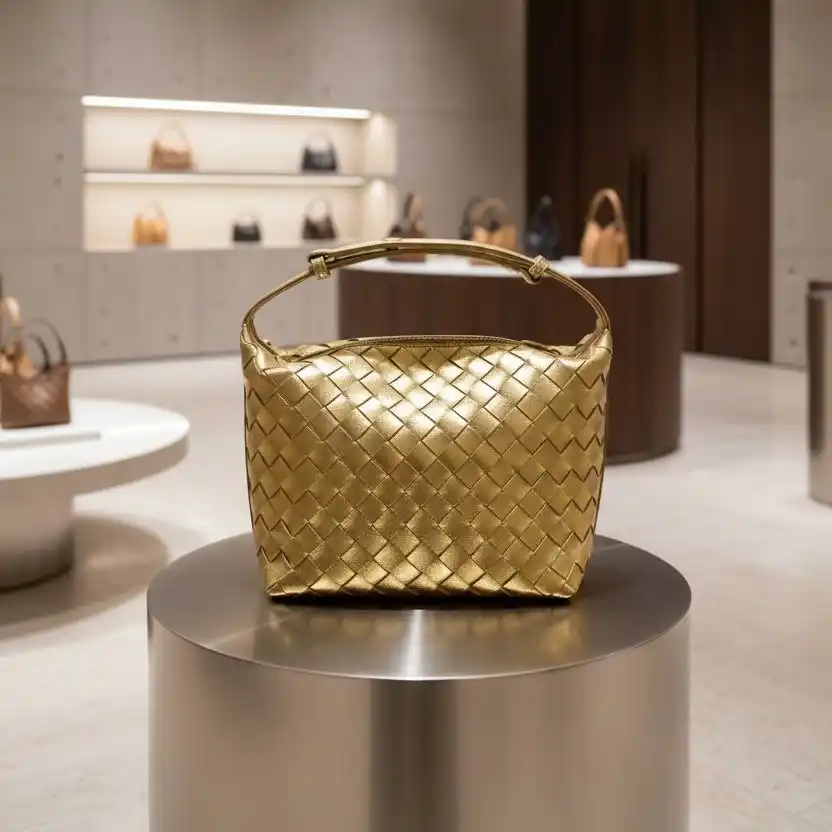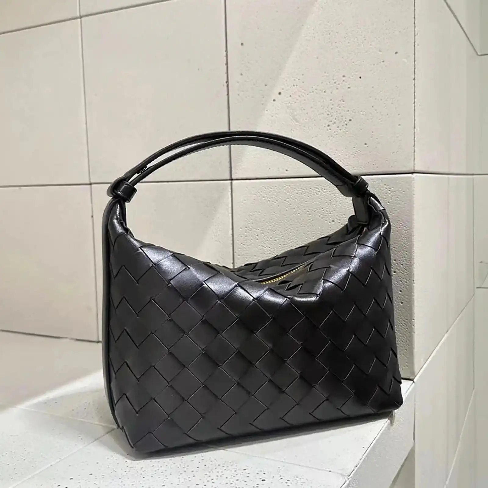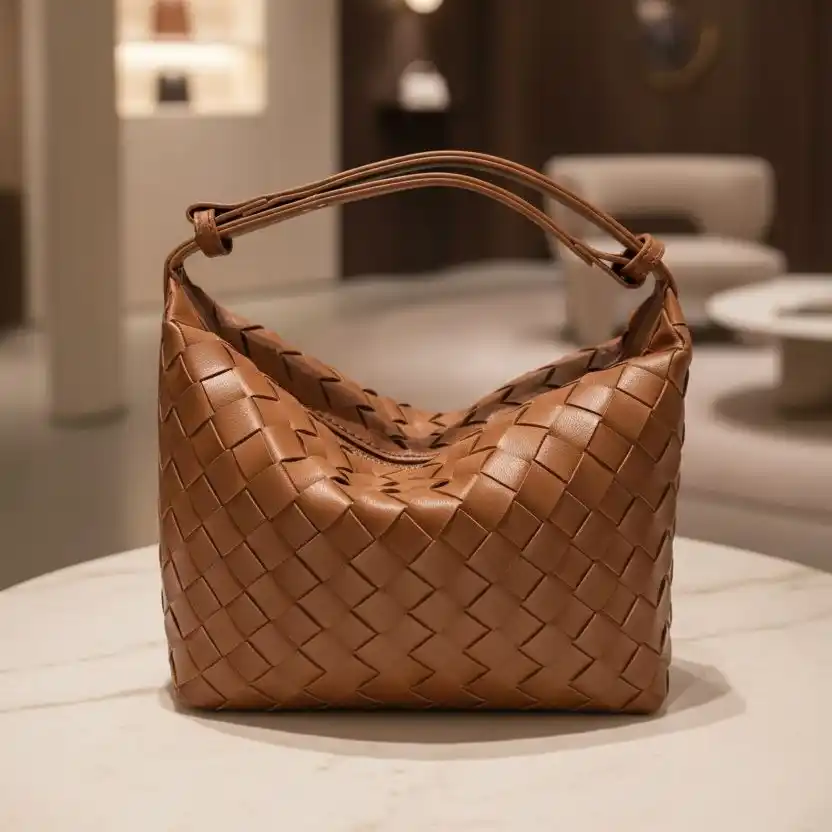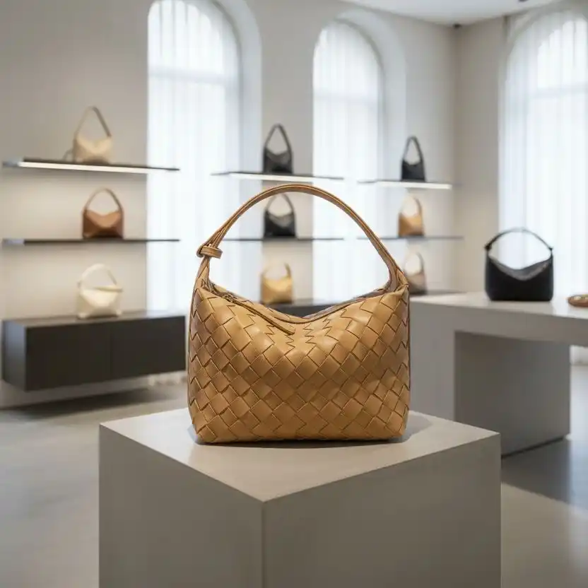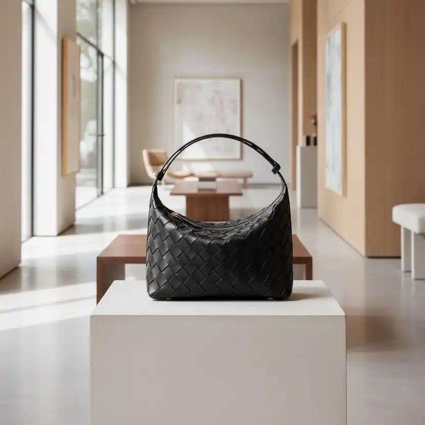 The Kai Hermis Veneta Natalie V Woven Leather Bag, distinguished by its iconic woven Intrecciato pattern and striking soft, rounded hobo silhouette, is a refined take on a classic shoulder bag. Crafted from a choice of premium smooth leather or lustrous metallic leather, this bag is a testament to sophisticated craftsmanship, seamlessly merging timeless Italian artistry with a modern, elegant sensibility perfect for versatile day-to-evening wear.